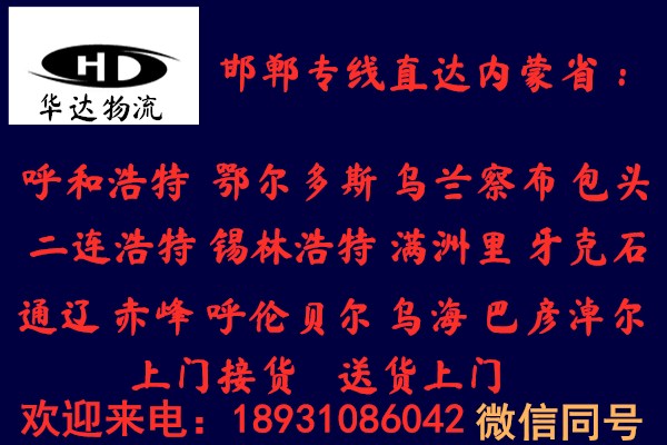 邯鄲到額爾古納物流歡迎您的來電(0310-5510646//18931086042靳經(jīng)理)邯鄲到額爾古納物流專線,邯鄲到額爾古納物流公司的詳細(xì)介紹頁面。